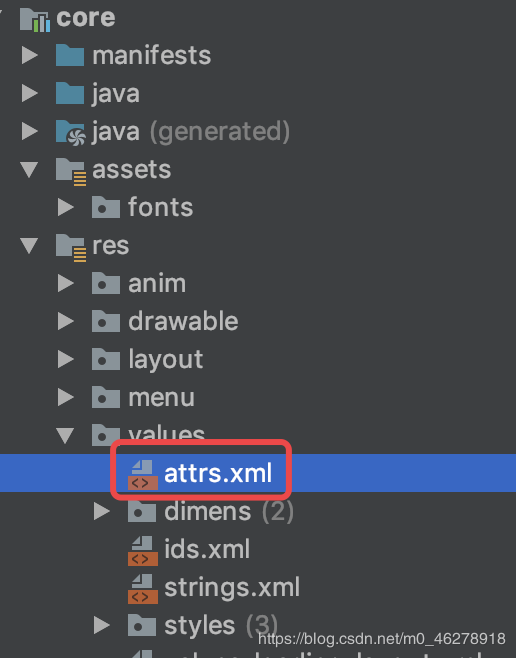首先,我们需要从xml里面获取值,因此,需要在attr中进行属性值的定义: