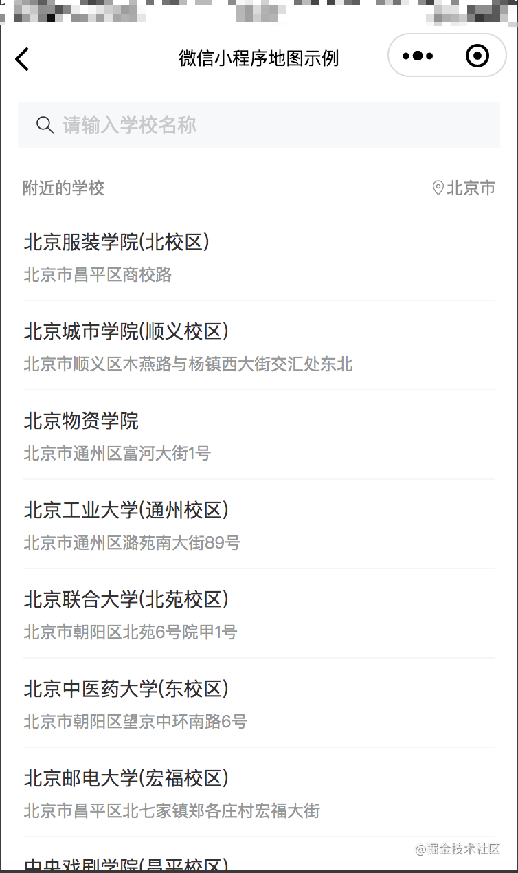 今天是我的小兄弟(微信小程序方面)在工作中遇到的一个场景——选择某个位置周围的学校,感觉很有用,就让他给大家分享一下。