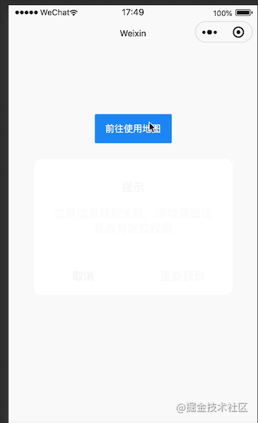 content: '位置信息获取失败,请检查微信是否有定位权限',