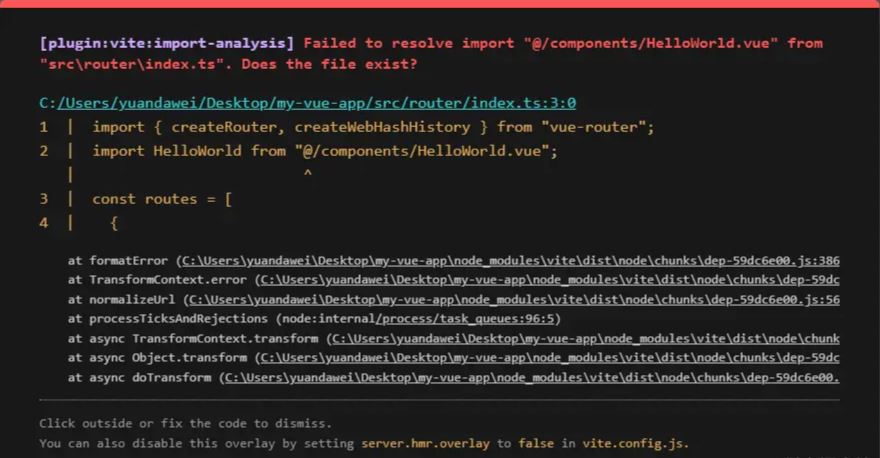 这是因为vite不能识别@,这其实跟webpack的配置是一样的,重定向一下就可以了。打开vite.config.ts加入以下的内容: