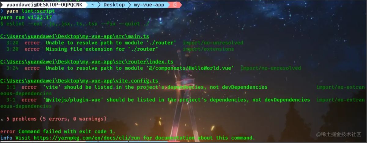 这次的搭建过程中并没有安装css处理插件,但是在vite中安装诸如sass、less都是比较简单的,就举例子sass直接运行yarn add sass即可(本文其实很多插件都是以sass为模板安装的),那么这次的坑就踩到这里了,期待下次的踩坑之旅。 仓库地址