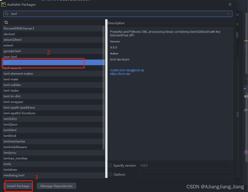 如果没有引入lxml,双击wheel,搜索lxml,安装,安装好后,就能查看到lxml包,运行项目,成功: