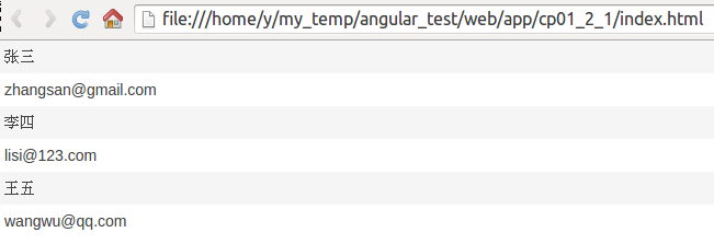 ng-repeat-start与ng-repeat-end时AngularJS(1.2.x)扩展的,使用这两个指令可以灵活控制遍历形式。