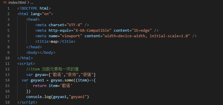 - 如果有一个元素满足条件,则表达式返回true , 剩余的元素不会再执行检测。