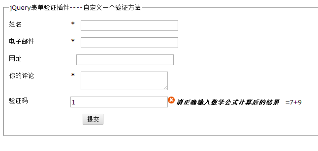 <legend>jQuery表单验证插件----自定义一个验证方法</legend>