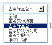 <option value="" class="">全部</option> <option value="0">董浜惠健净菜</option> <option value="1">古里绿品公司</option> <option value="2">曹家桥物流公司</option> <option value="3">董浜农服中心</option>
