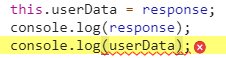 在 data中定义了 userData ,但是出现异常如下,异常信息说明userData没有定义,但是我们明明在data中定义过了,小胖我思前想后,发现我又写了一个沙雕的bug,userData是vue对象中的data里面定义的,要想使用,必须使用this关键字,this指代的是vue对象。