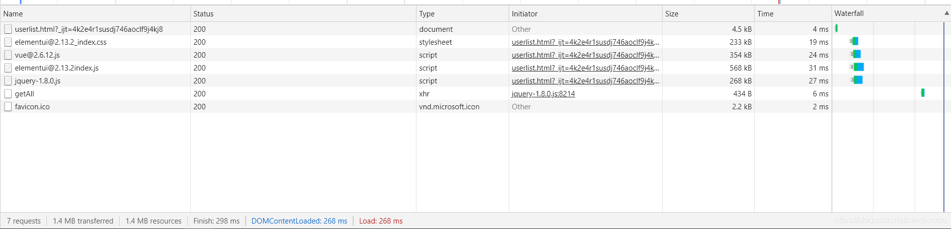 钩子函数发送ajax获取数据,放回到表单中,这里有一个明显的延时,数据要过将近1s才显示,出现过两次,后面基本上在200ms左右,这里因为我的element.css elementui.js以及vue.js都是在放在本地,不是去请求网络,所以速度稍微快一点。(如果面试问道怎么优化页面响应速度的话,可以说将js,css文件使用min版的,然后使用离线文件,(一般企业开发,开发阶段可能使用网络文件,但是生产环境都是使用离线文件))