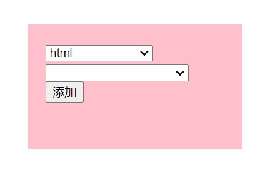 <div style="width: 200px;height: 100px;margin: auto;margin-top: 100px;padding: 20px;background-color: pink;"> <select id="mySelect1" style="width: 120px;"></select> <select id="mySelect2" style="width: 160px;"></select> <button id="addSelect2">添加</button> <!-- 此处用于点击动态添加到mySelect2 --> </div>