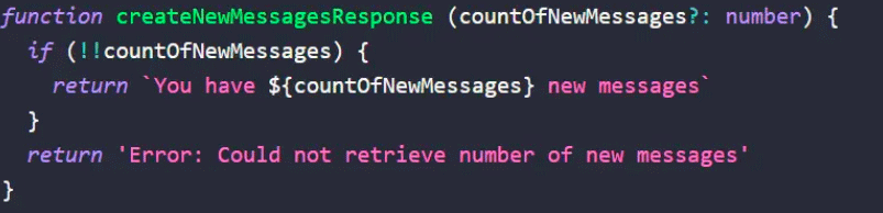 使用 !!通过宣传内部知识来混淆代码的真正含义。这使得新开发人员更不容易访问代码库,无论是一般开发的新手,还是 JavaScript 的新手。引入细微的错误也很容易。来自“非布尔布尔检查”的 countOfNewMessages 为 0 的问题仍然存在 !!。