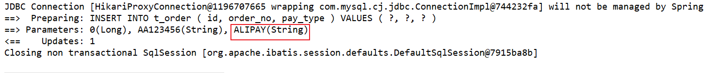 ### SQL: INSERT INTO t_order ( id, order_no ) VALUES ( ?, ? )