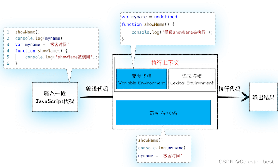 根据上面的理解可知,代码可以分为变量提升的代码和可执行的代码。