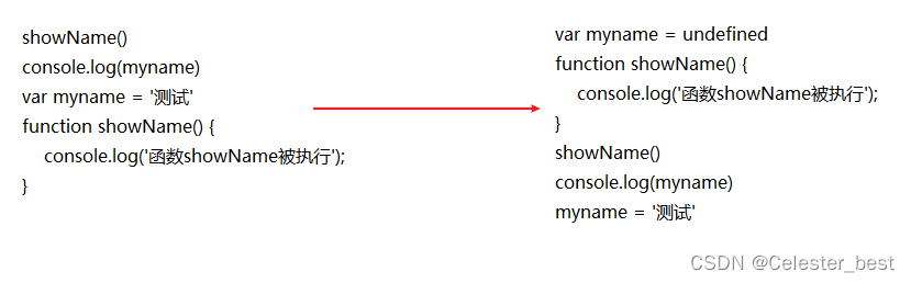 变量提升,是指在 JavaScript 代码执行过程中,JavaScript 引擎把变量的声明部分和函数的声明部分提升到代码开头的“行为”。变量被提升后,会给变量设置默认值,这个默认值就是undefined。所以这也解释了为什么第一段代码中myname打印的值是undefined了。