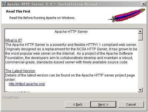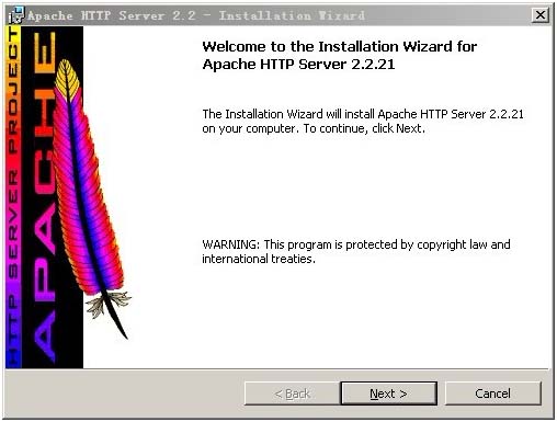 双击httpd-2.2.21-win32-x86-no_ssl.msi开始安装。出现安装欢迎界面。
