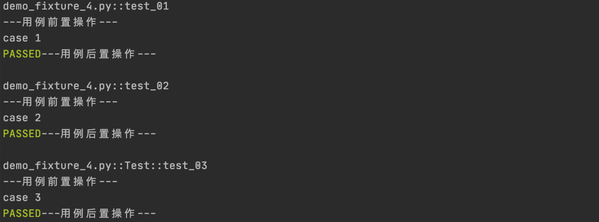 Pytest的fixture另一个强大的功能就是在函数执行前后增加操作,类似setup和teardown操作,但是比setup和teardown的操作更加灵活;具体使用方式是同样定义一个函数,然后用装饰器标记为fixture,然后在此函数中使用一个yield语句,yield语句之前的就会在测试用例之前使用,yield之后的语句就会在测试用例执行完成之后再执行。