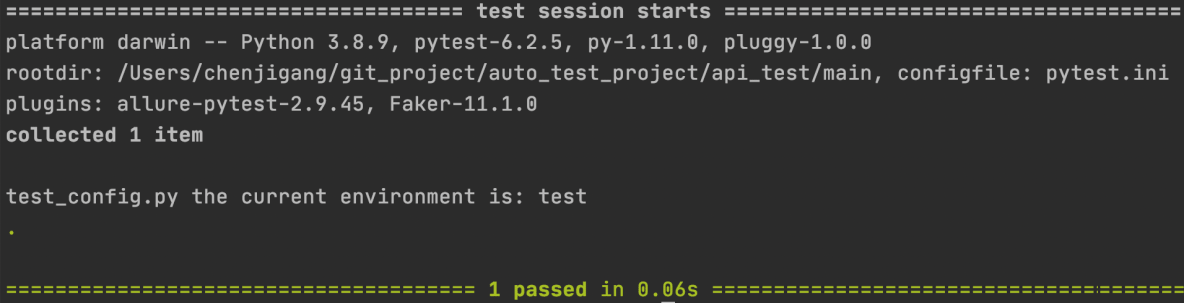 由于前面的pytest_addoption中定义的env的默认参数是test,所以通过pytestconfig.getoption获取到的env的值就是test: