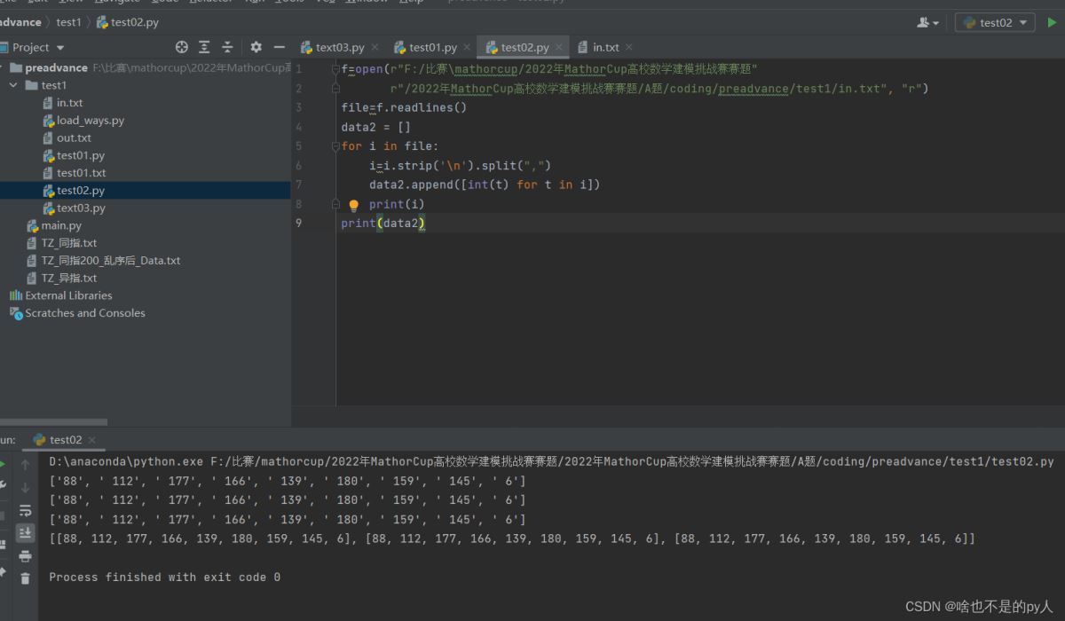 (3)第二种:每行分开读取 for循环 line.strip("\n").split()
