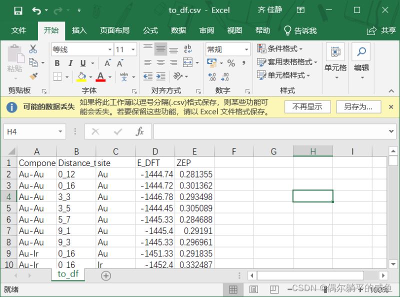 ④csv文件只有一个sheet,太多的表不易保存,注意命名规范。