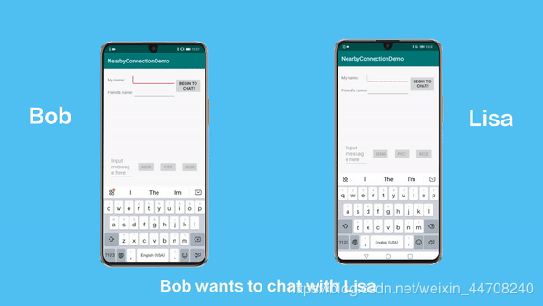 们生活中似乎经常能遇到这种尴尬的场景,近距离数据传输功能是用户的一个痛点。现在,只需要接入华为近距离通信服务,通过Nearby Connection便可以轻松实现设备间的数据传输,传输类型支持短文本、流数据和文件数据等类型,可帮助app实现本地多人游戏、实时协作、多屏游戏和离线文件传输等功能。下图是功能演示: