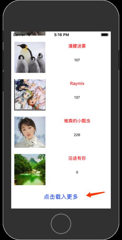 点击后进行网络处理,把之前最后一条id也传给服务器,让服务器返回这个id后面的20条记录。然后重新setState即可。