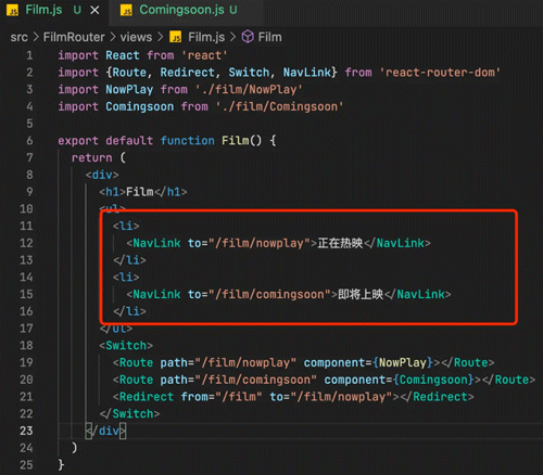 <NavLink to="/film/comingsoon">即将上映</NavLink>