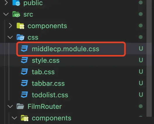 我们将其重命名,中间加个固定的单词module(仅以middlecp.module.css为例):