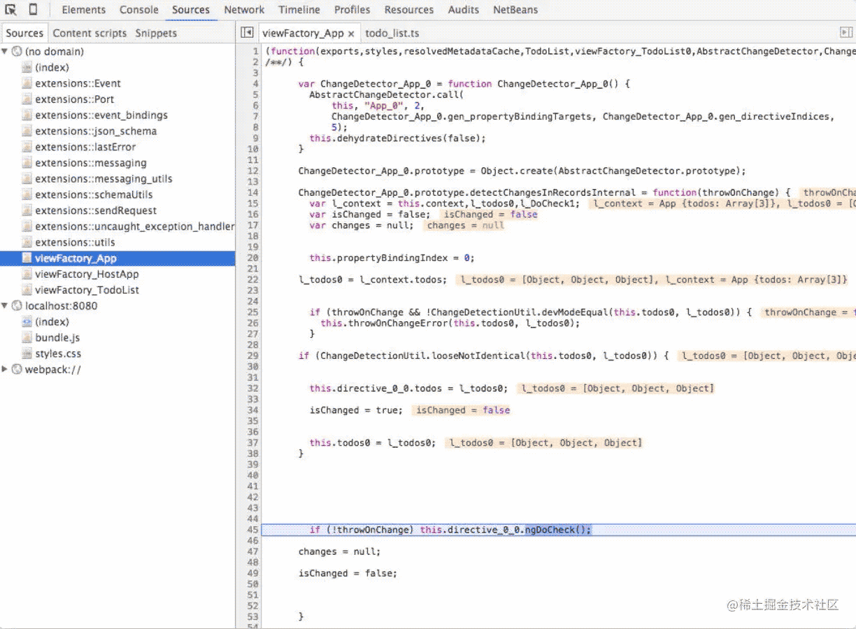 我们实际上可以在运行时看到变化检测器的样子!要查看它,只需在 Todo 类中添加一些代码以在访问某个属性时触发断点。