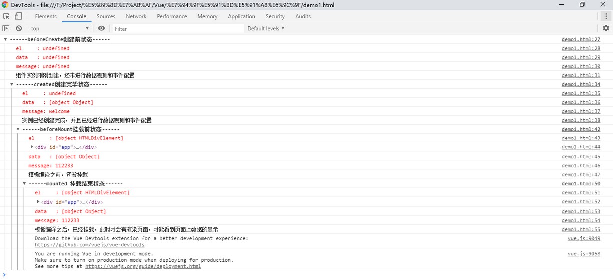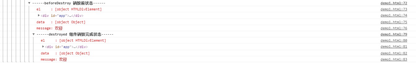 最后点击“销毁组件”按钮,查看控制台显示的打印信息: