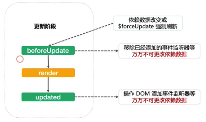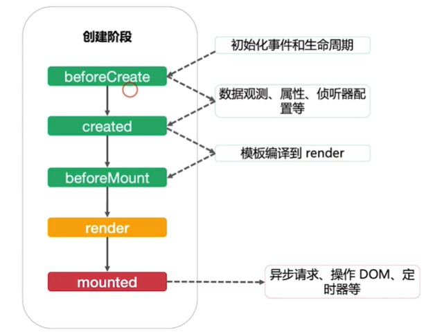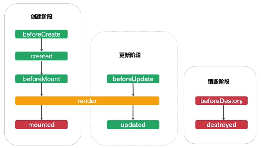 Vue组件的生命周期共分为三个阶段,如下图所示: