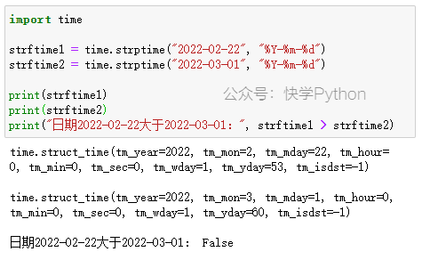 print("日期2022-02-22大于2022-03-01:", strftime1 > strftime2)