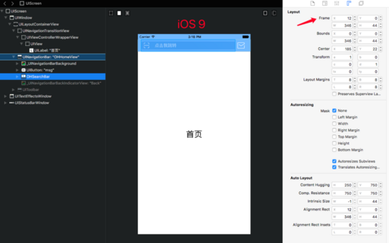 查看视图层级会发现,iOS 11以下,设置titleView,x的默认坐标居然是12,而iOS 11是0。所以设置textField的x坐标的话,在iOS 11下必须多出12才会是一致的位置。