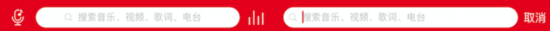 一些主流App也常见在导航栏嵌入searchBar,以网易云音乐和知乎为例,左边是主页,右边是搜索页面 (注意光标)。