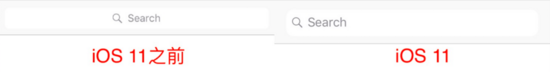 系统原生的UISearchBar在iOS 11经历了一次变革,高度由原来的44变成了56 (使用默认高度的估计都被坑了),样式也发生了些微的变化,比如在未输入状态下圆角变化,放大镜图标和文本的文字不再居中而是靠左了。具体看图