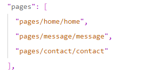 通过 app.json 文件的 pages 节点,快速新建 3 个对应的 tab 页面,示例代码如下: