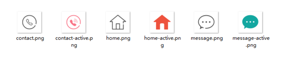 图片名称中 包含 -active 的是选中之后 的图标