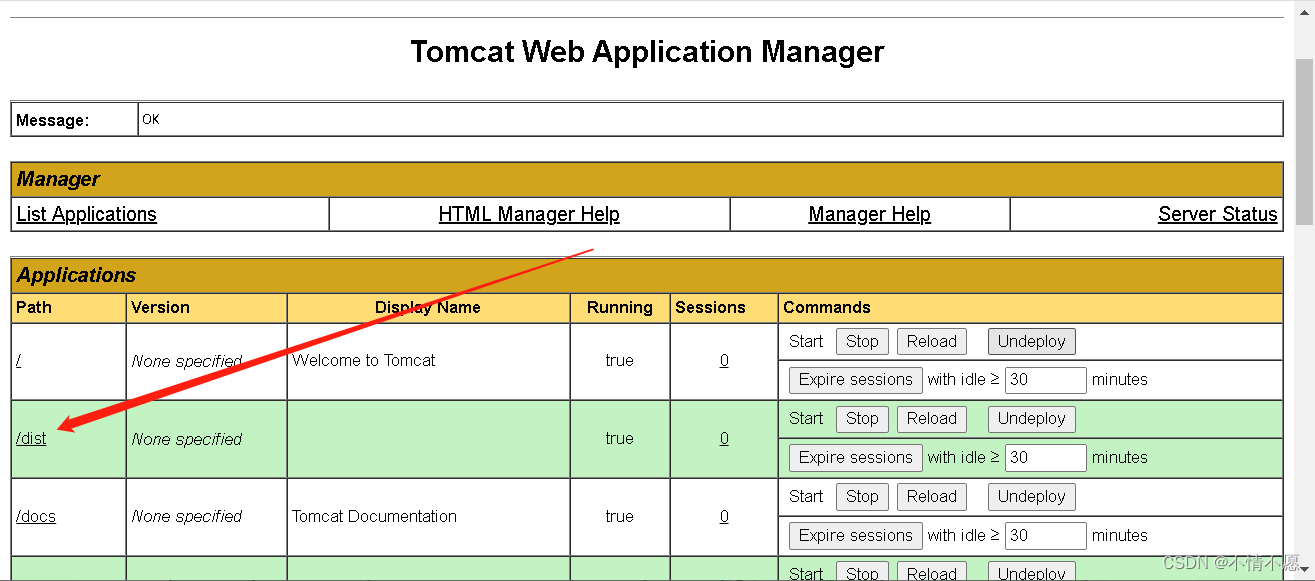 将整个 dist 文件夹放到 Tomcat 目录下的 webapps 目录下