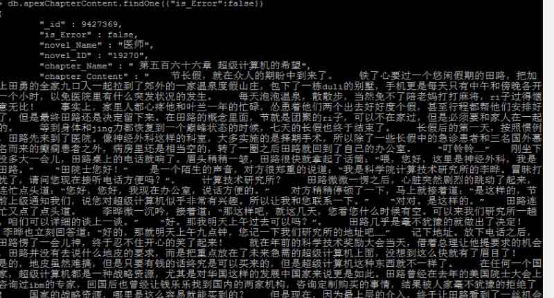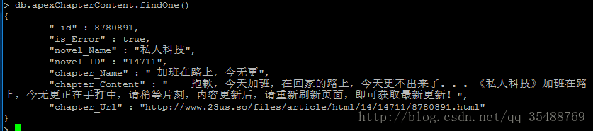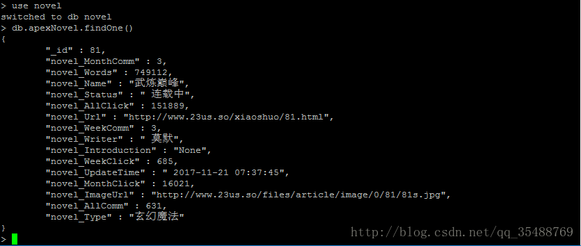 self.bookColl.remove({"novel_Url":"http://www.23us.so/xiaoshuo/414.html"})4.结果