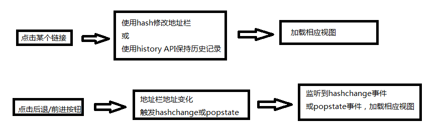 在我们介绍路由之前我们首先谈一下SPA,所以SPA就是我们现在经常说的单页应用single page APP,为了实现无刷新的视图切换我们之前的做法就是利用AJAX从后取出数据然后渲染在前台页面HTML中,但是AJAX有一个致命的缺点就是不能实现浏览器的后退按钮失效,为了解决这个问题我们通常使用hash,监听hashchange事件来进行视图切换,另一个方法是用HTML5的history API,通过pushState()记录操作历史,监听popstate事件来进行视图切换,也有人把这叫pjax技术。基本流程如下: