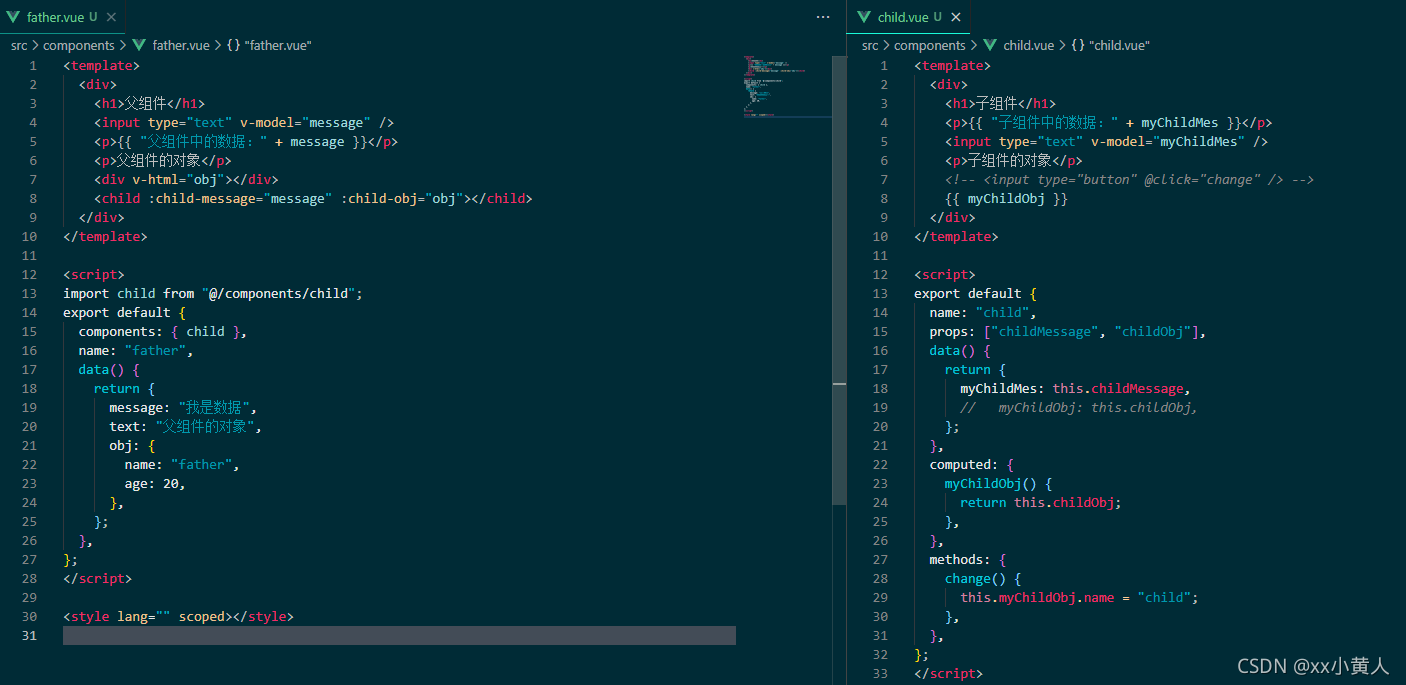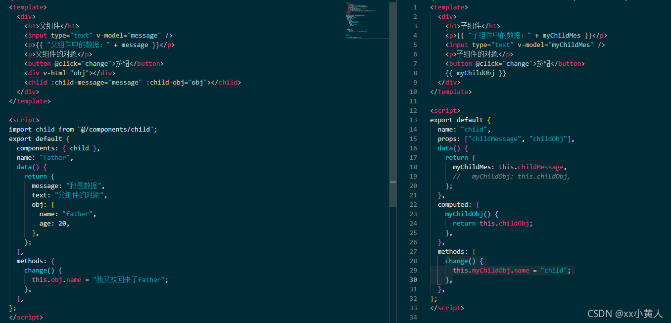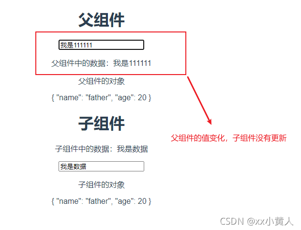 2.基本数据类型修改,子组件不会影响父组件,但是若是引用数据类型数组对象的话,两者相互影响,共用同一个内存地址,相当于浅拷贝