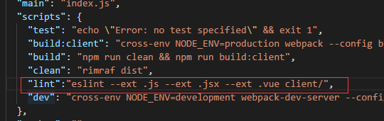 --ext就是指定检测的文件 client/ 意思是检测哪些文件夹下面的文件 我这边文件都写在了client下面了所以写的client。