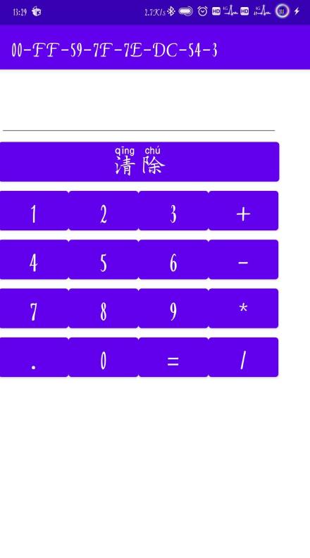 <?xml version="1.0" encoding="utf-8"?> <GridLayout xmlns:android="http://schemas.android.com/apk/res/android" android:layout_width="match_parent" android:layout_height="match_parent" android:rowCount="6" android:columnCount="4" > <!--文本标签--> <EditText android:id="@ id/edit" android:layout_width="350dp" android:layout_height="wrap_content" android:layout_columnSpan="4" android:layout_marginLeft="4px" android:gravity="left" android:textSize="50dp" /> <Button android:id="@ id/clear" android:layout_width="353dp" android:layout_height="wrap_content" android:layout_columnSpan="4" android:text="清除" android:textSize="26sp" /> <Button android:id="@ id/btn1" android:text="1" android:textSize="26sp" /> <Button android:id="@ id/btn2" android:text="2" android:textSize="26sp" /> <Button android:id="@ id/btn3" android:text="3" android:textSize="26sp" /> <Button android:id="@ id/jia" android:text=" " android:textSize="26sp" /> <Button android:id="@ id/btn4" android:text="4" android:textSize="26sp" /> <Button android:id="@ id/btn5" android:text="5" android:textSize="26sp" /> <Button android:id="@ id/btn6" android:text="6" android:textSize="26sp" /> <Button android:id="@ id/jian" android:text="-" android:textSize="26sp" /> <Button android:id="@ id/btn7" android:text="7" android:textSize="26sp" /> <Button android:id="@ id/btn8" android:text="8" android:textSize="26sp" /> <Button android:id="@ id/btn9" android:text="9" android:textSize="26sp" /> <Button android:id="@ id/cheng" android:text="*" android:textSize="26sp" /> <Button android:id="@ id/dian" android:text="." android:textSize="26sp" /> <Button android:id="@ id/btn0" android:text="0" android:textSize="26sp" /> <Button android:id="@ id/sum" android:text="=" android:textSize="26sp" /> <Button android:id="@ id/chu" android:text="/" android:textSize="26sp" />