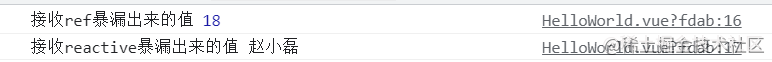 console.log('接收reactive暴漏出来的值',zihello.value.ziname.name)
