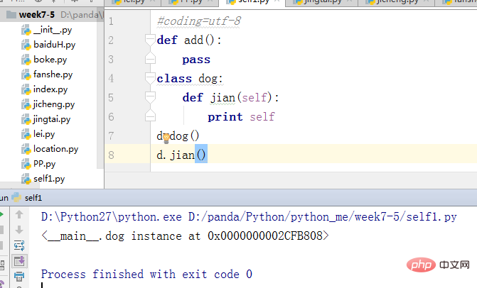 以下例子,打印self的值。(打印结果中的intance是实例的意思)