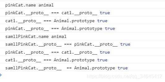 console.log(samllPinkCat.__proto__ == pinkCat.__proto__ === cat1.__proto__ == Animal.prototype)
