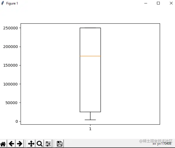 另一个有用的工具是 boxplot,您可以通过 matplotlib 模块使用它。箱线图是数据分布的图形表示,显示极值、中位数和四分位数。我们可以使用箱线图轻松找出异常值。现在再次考虑我们一直在处理的数据集,让我们在属性总体上绘制一个箱线图