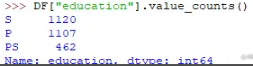 另一种有用的方法是 value_counts(),它可以获取分类属性值系列中每个类别的计数。例如,假设您正在处理一个客户数据集,这些客户在列名 age 下分为青年、中年和老年类别,并且您的数据框是“DF”。您可以运行此语句以了解有多少人属于各个类别。在我们的数据集示例中可以使用教育列