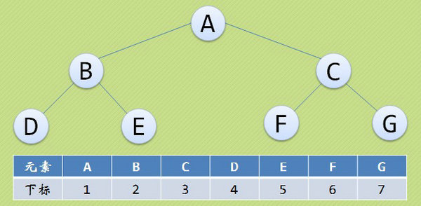 二叉树的顺序存储结构就是用一维数组存储二叉树中的各个结点,并且结点的存储位置能体现结点之间的逻辑关系。