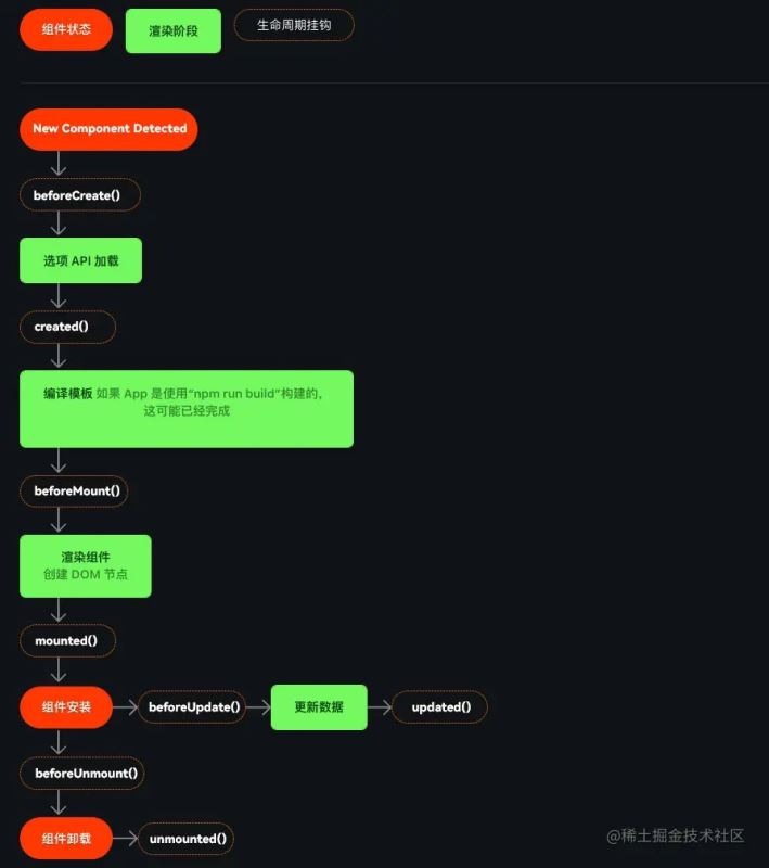 和其他框架一样,Vue 有许多生命周期钩子,它们允许将代码附加到在创建或使用 Vue 应用程序时发生的特定事件,如当组件加载时、当组件被添加到 DOM 时或者当某些东西被删除时。