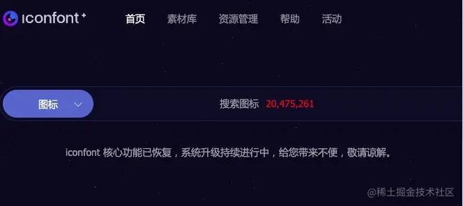 正巧遇到 iconfont 维护,到目前为止虽然可以使用,但是想要上传新的图标还是不行。