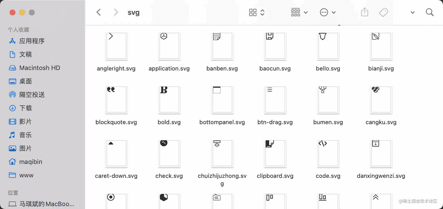 我们可以手动一个一个从 iconfont 图标库中下载 svg,但这样做未免有些过于麻烦。